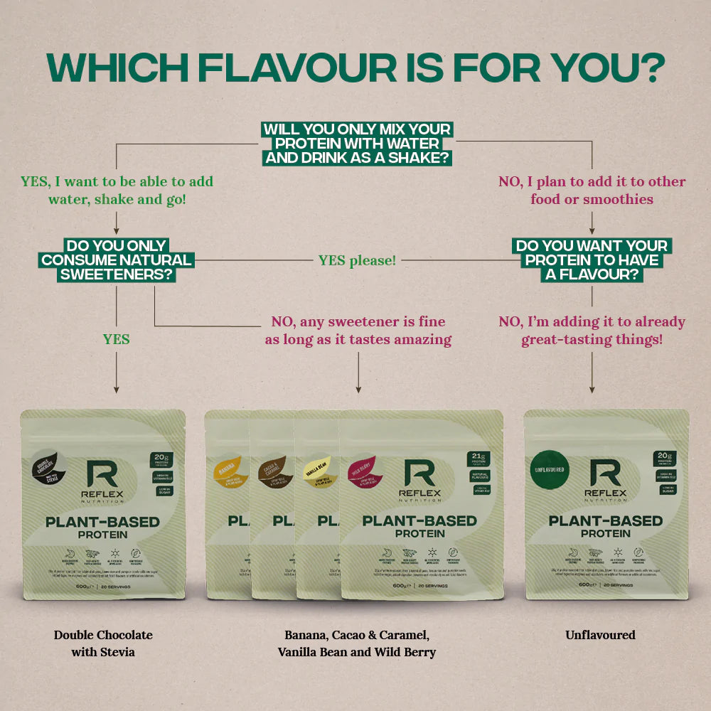 Available in four great-tasting natural flavours, Cacao & Caramel, Vanilla Bean, Wild Berry and Banana. Plus there's an unflavoured version, which is perfect for adding to bakes and already sweet enough smoothies. As well as Double Chocolate with Stevia flavour for those who prefer the sweetener stevia.